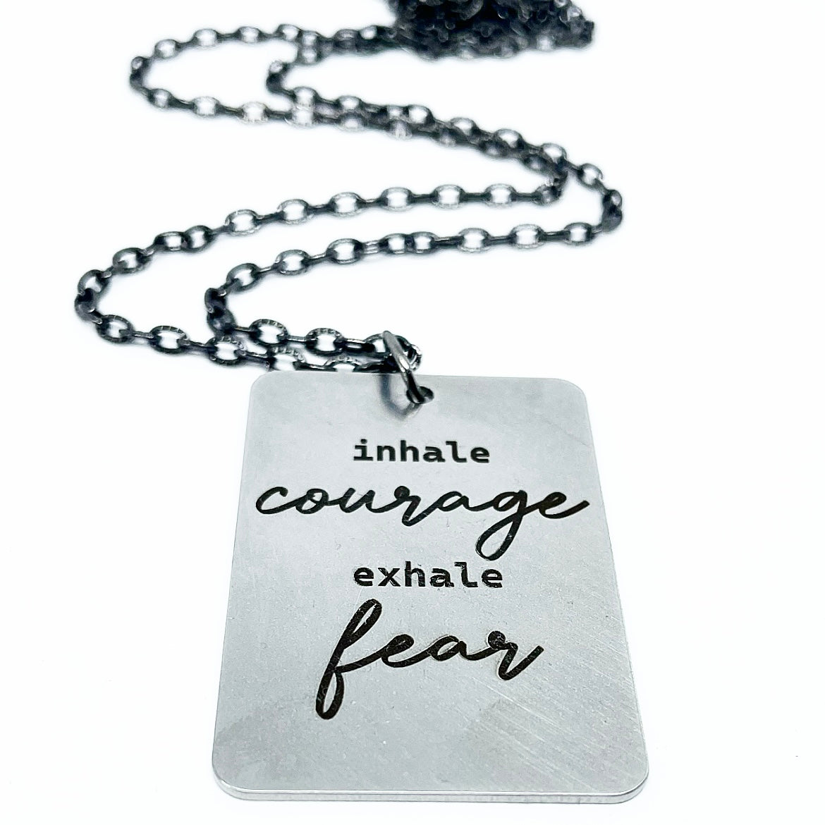 - Inhale courage, exhale fear ✨ Your daily reminder that everything you desire lies beyond fear's grasp. Believe in yourself, trust in your journey, and watch as doubts dissolve into possibilities. Embrace this empowering mantra with our personalized necklace. Let's release doubt, anxiety, and stress, replacing them with faith and trust in ourselves.