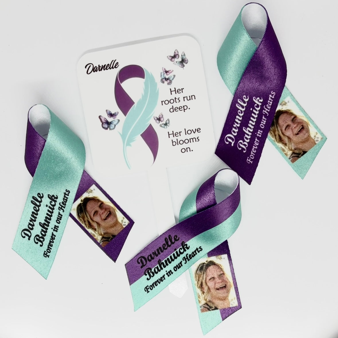 - Customization options: Photo, text, dates, awareness colors, or wording of your choice