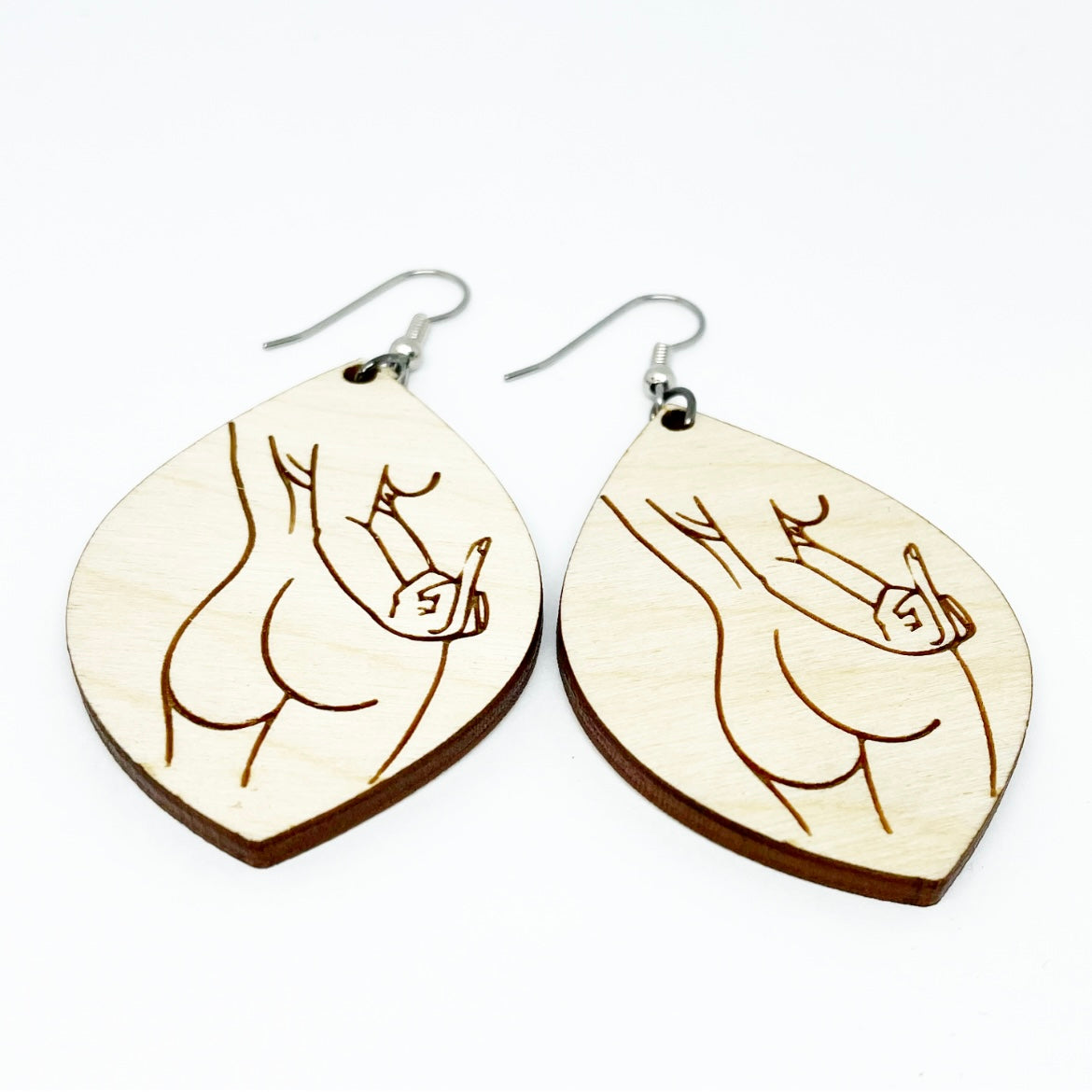 - Laser engraved, Baltic birch earrings