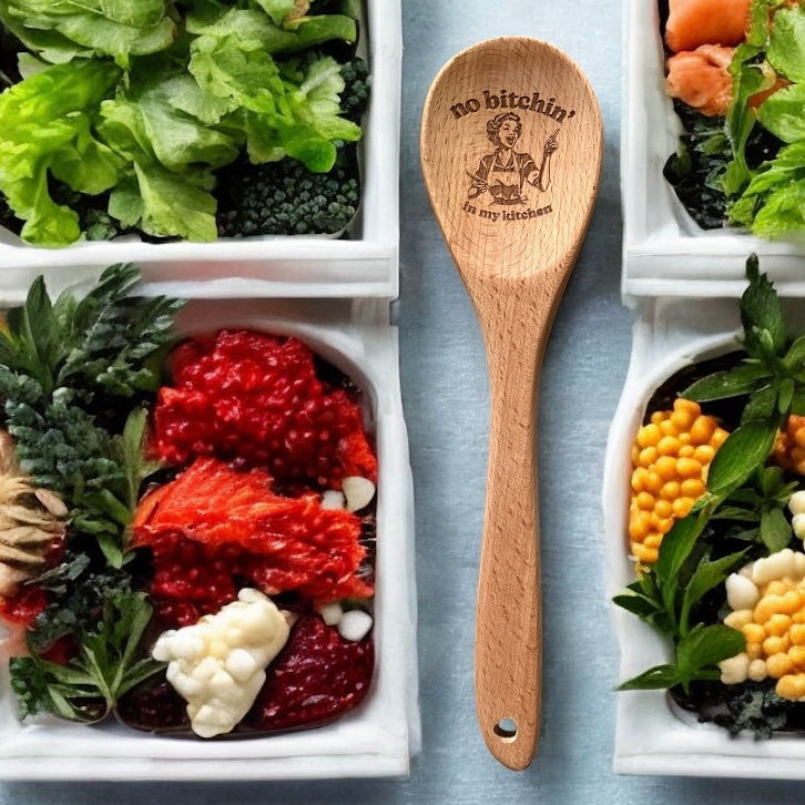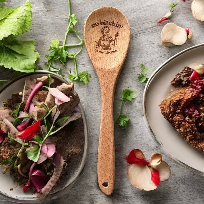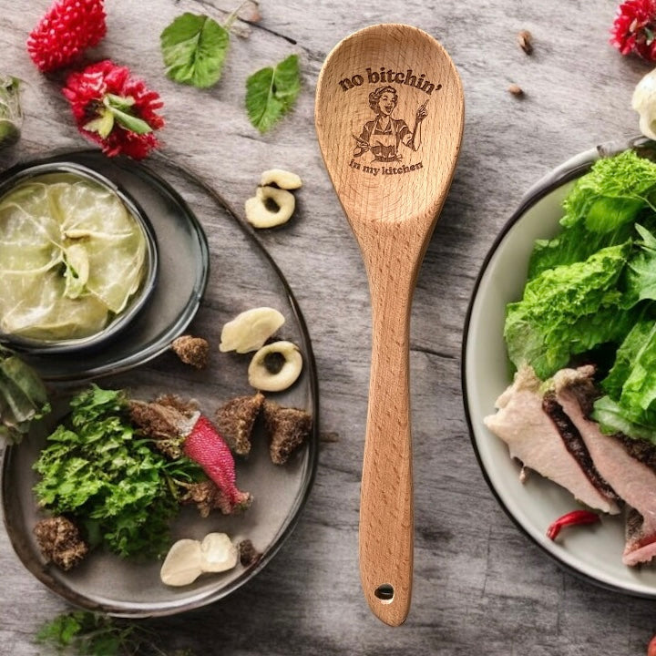 Add a dash of charm to your kitchen with this beautifully engraved 13” solid wood spoon — the perfect blend of practical and playful. Each spoon is carefully engraved with a kitchen-themed quote that brings a smile every time you stir, mix, or serve.